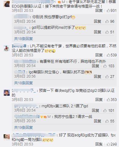 赛后EDG的落败引起了网友的热议,一方面有人调侃:恭喜EDG通过强队认证!另一方面有人表示:“预言一下春决EDG打IG,毕竟经过了LGD2-0的强队认证!”