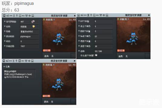 回复活动帖子,把你抓到的精灵的摘要资料卡的基本信息页、个体值页和抓捕信息页上传,并写明你的玩家角色名和分数。如: