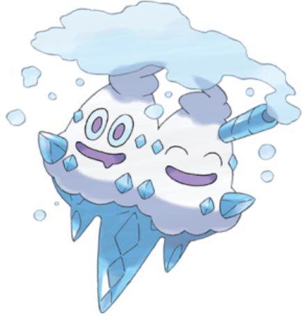 黑白凑数图鉴n.0,双份的冰淇淋违和感实在满满。冰淇淋从一诞生开始就被冠以了唯一称号,直到现在哪怕大幅加强也没能完全翻过身来,技能池实在太惨,种族也是很虚高。属性纯冰全PM最弱几无疑问,一大堆缺点在此就不赘述了,这也间接导致冰淇淋是相当贫招。种族迷之达到了御三家水准,然而分配得实在是很烂,冰系抗性实在太糟糕所以唯一的强势点基本在于速攻,但冰淇淋这稀烂的水桶腰种族只给这么点速度,强行让冰淇淋有双刀级别的双攻,和还不错的耐久,技能和属性完全不能配合这个种族,造成了极大的种族浪费。如果冰淇淋速度能过百,或许会好用的多(虽然攻击技能池不强化仍然难翻身)。七代天气手特性大派送给四个冷门,煤炭龟大嘴鸥庞岩怪都借机翻身,但冰淇淋却还是一个大冷门(虽然比得到降雪前要稍微好一点),因为雪天手本来就不少且雪天先天弱势。即便如此,降雪仍然是冰淇淋最适合的一个特性,不管怎么说给自己暴风雪加BUFF加破腰带就已经足够当外挂用了。
