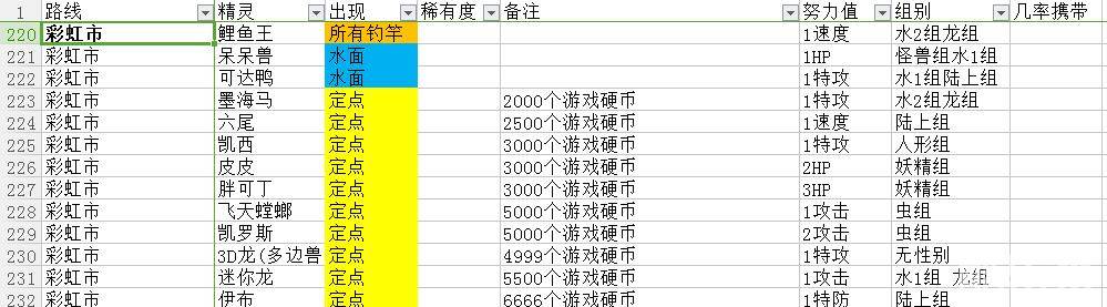 《pokemmo手游》彩虹市精灵有哪些 彩虹市精灵分布一览