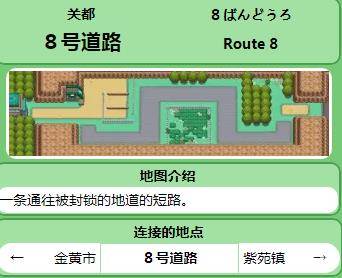 《pokemmo手游》8号道路有哪些精灵?关都地区的8号道路是关都地区的第八条道路。西边是金黄市,东边是紫苑镇。下面小编就为玩家带来《pokemmo手游》8号道路精灵分布,一起来看看吧。