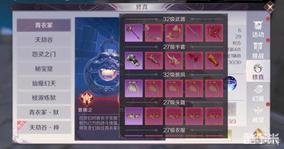 除了团队副本,需求人数较少,难度相对较低的修真副本更是我们获得装备的绝佳选择,在50级之前,修真副本主要包括青衣冢、天劫谷和怨灵之门。在掉落方面,青衣冢主要掉落使用等级为27和32级的装备道具,品阶一般为5。作为29级就可以通关的副本,收益还是不错的。