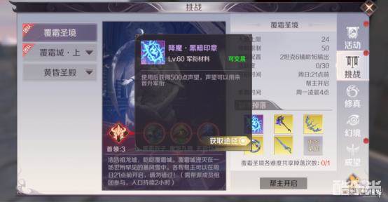 首先,装备是我们提升修为最直接的途径,而获得装备最主要的途径就是刷本,副本根据类别的不同,可以分为团队副本和修真副本,前者在中期主要指的是人数上限为24人的覆霜圣境,在掉落方面,品阶为6的各职业的除腰饰和项链以外的所有部位装备,装备等级与玩家等级相关。这个品阶可谓是中期的巅峰了,一旦得到将极大地提高我们的输出能力。另外会大概率获得黑暗印章。