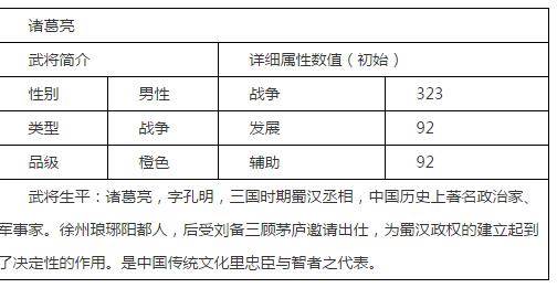 诸葛亮做为橙将,其属性强大,固有技能强势,而领悟学习技能更是方便,比之其它武将有过之无不及,唯一的问题就是获取有一定的难度。好了,诸葛亮的全面解析就到这里,希望对各位主公有所帮助。