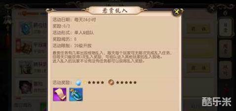 悬赏乱入活动在每天24小时都能进行的,有3次奖励。活动的形式可以是单人或组队,悬赏乱入不奖励阅历,在玩家的等级达到20级之后才开放活动。悬赏乱入活动可以无限制完成,但每天只能活动3次乱入的奖励,所以不要重复做了哦。