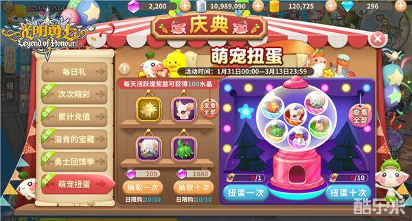 听闻女神节庆典开启,洛肯船长也带来了他收藏多年的宝藏。只要各位萌主大人消耗一定数量的钻石,即可获得升灵书页、宠物养成材料、10连扭蛋券以及6级多彩宝石等丰厚好礼哟~