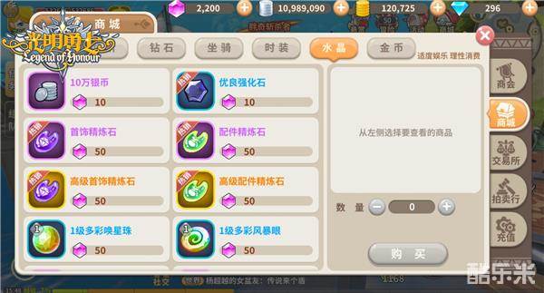 在女神节到来之际,我们在游戏内新增水晶商城。在水晶商城中,各位萌主大人可使用水晶兑换自己所需的一些游戏道具。在水晶商城中,不仅有各种品质的强化石、精炼石以及多彩宝石等。
