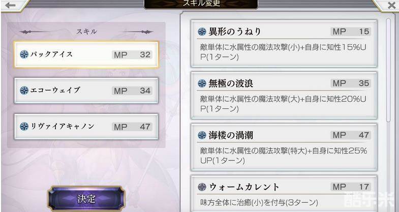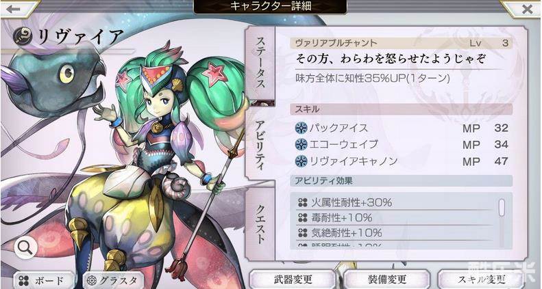 水属性耐性debuff不错,2段攻击不错,自带知性buff的水特大攻击也不错,还有aoe特大攻击。