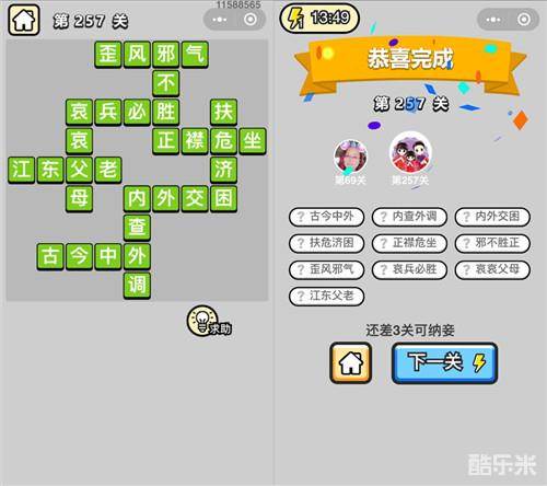 《成语升官记》榜眼第257关答案: