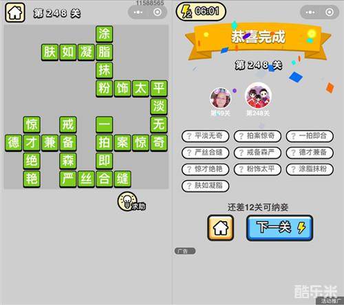 《成语升官记》榜眼第248关涉及到10个成语,都是没有什么难度的成语,所以整个关卡也是没有什么难度的,下面就是小编为大家整理好的答案~