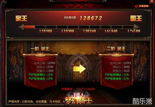 我们的爵位从最初的勇士开始,一直到比较高的爵位如伯爵,侯爵,再到后面的亲王,皇帝等等。爵位的高低更多代表着玩家本身在PVP方面的实力。而且越高的爵位称号给玩家带来的PVP属性加成也越多。