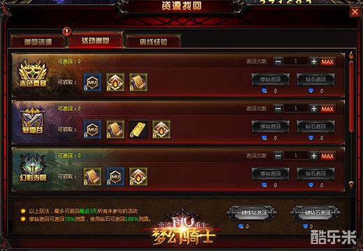 《奇迹重生:梦幻骑士》每天都有不同的战斗活动让我们获得大量声望点,但是我们难免会以为一些事情而错过活动。这时候我们还可以通过《奇迹重生:梦幻骑士》的“活动追回”系统来把声望奖励“找回来”!保证让你不错过任何一次获得声望的机会!