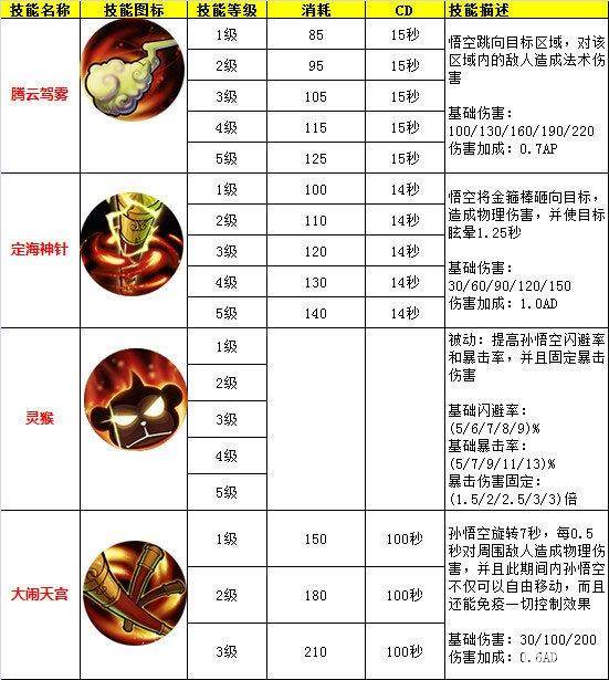 对抗技巧:孙悟空的4个技能十分全面,切入、控制、生存、爆发面面俱到,所以面对他的时候要保证自己的血量不能太少;同时尽量在其技能、装备成型前进行压制,多使用技能压低他的血量,尽量避免与其对打。如果自身爆发可观,可在血量充足的时候跟他对拼一波。如果缺少爆发和控制,不要尝试去击杀孙悟空,此时更需要注意的是留着逃生技和控制技保证自己不被击杀。想要击杀孙悟空,不要着急释放控制技和切入技,应在孙悟空释放腾云驾雾后进行控制。