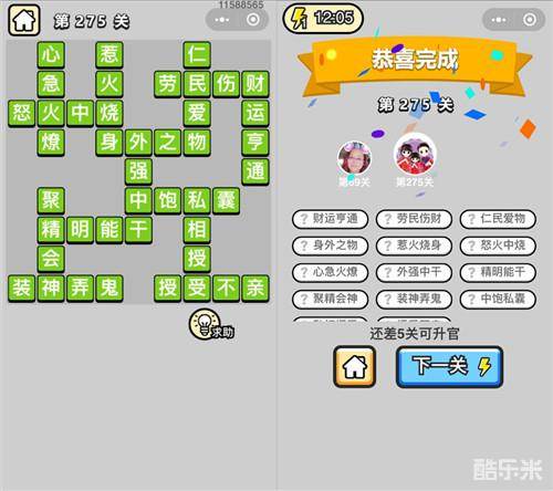《成语升官记》榜眼第275关涉及到了14个成语,那么这14个成分别是什么呢?难度如何呢?下面就让小编告诉你吧,以下就是小编整理好的答案~