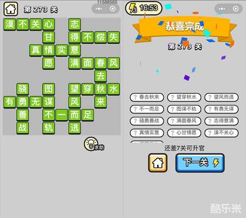 《成语升官记》榜眼第273关涉及到的成语是比较简单的,并且还有之前已经遇到过的,相信很多网友可以轻而易举的通关,为了保证大家百分百顺利通关,小编已经为大家准备好了答案~