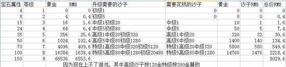 下面是九州三国所有宝石价格表:
