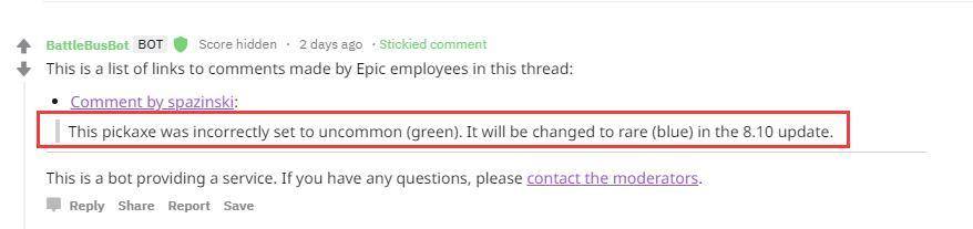 堡垒之夜绿皮镐卖800V币引玩家抱怨 官方作出回应