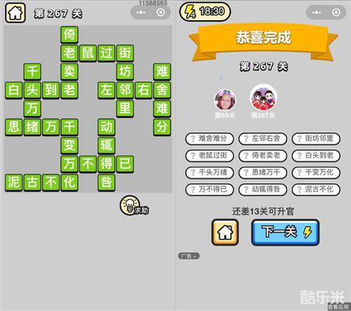 《成语升官记》榜眼第267关答案