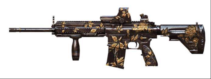 虽然HK417是火线币商城的专属永久武器,但是毕竟也是牡丹系列武器的新成员,所在在具体的枪械外观和皮肤上也是承继了牡丹枪械皮肤的特色与亮点,整体上还是具有相当高的枪械颜值!