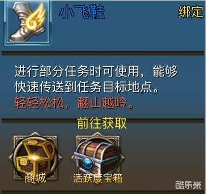 小飞鞋的获得方式有两种:1.玩家活跃度达到一定数额后,即可开启活跃宝箱以获取小飞鞋,另外便是可以通过商城购买的方式获得。