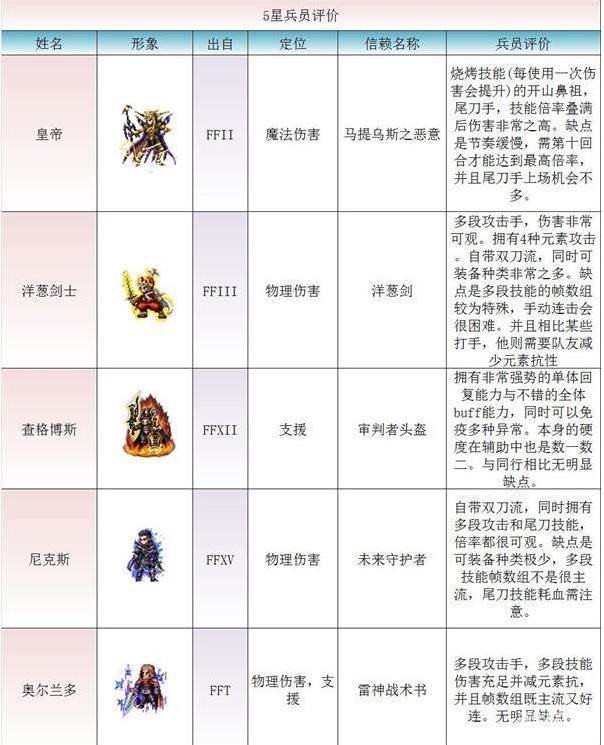 最后编辑于6年前最终幻想勇气启示录哪些5星兵员厉害?平民适合培养哪些角色?来看看小编带来的攻略。