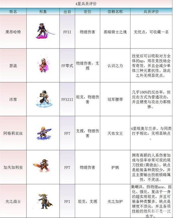 最终幻想勇气启示录4星兵员哪些比较强?优先选择那些兵员?来看看小编带来的角色培养攻略。