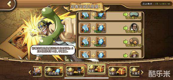 累计充值6元,可额外获得钻石*60、初春突破兑换券*1