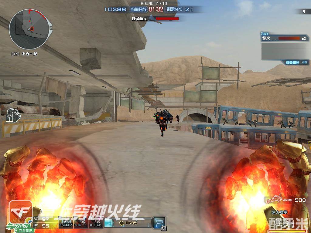 当我们按下“3”键时即会蓄力待发,此时的双手可是杀(火)气腾腾!左键会向正前方连续投掷三个能量火球,每一颗都威力不凡!小编也是在新巨人城这张地图中进行了简单的测试,一整排的小NPC可是瞬间都会被清理干净喔!等等,可能很多细心的小伙伴也已经发现,这与我们挑战模式中的职业代打冰火魔兽可是有些许相似之处呢!