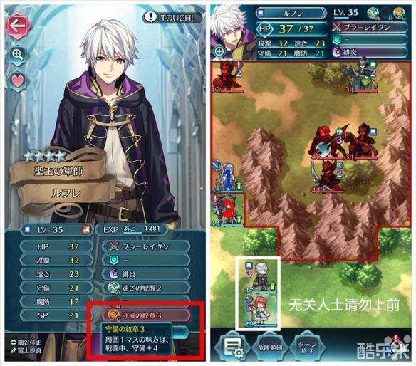 ② 打开危险范围可以看到所有敌人的可攻击范围,我方枪兵顶上范围的尽头一格,然后安排一个高攻的剑兵站在枪兵身后一格,待机。