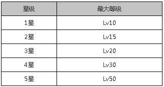 在火焰纹章:英雄中,当角色的等级达到最高了之后,可以通过觉醒来提升角色的星级。游戏中的角色星级共有5等,星级等级越高,角色的最大等级也会越大,具体为下表。