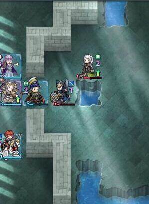 如图为敌人行动后的结果,这里无论怎样大海收到绿魔下次攻击都会死,所以要后撤,我正还带的是红魔可以解决上面的绿斧,那只酱油天马随便挪一挪位置,大海后撤喂奶,能回至8HP。