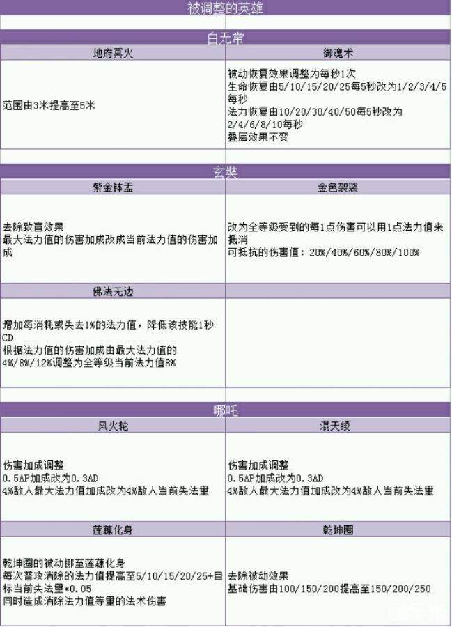 白无常,我就呵呵了,知道5米是有多长吗?老虎的射程,不说了以后玩33谁敢说白无常是移动的ATM!~~玄奘可以说增强了中期,虽然移除了1技能的致盲,但最强搅屎棍还是他,中期敢跟唐僧撸的真没几个。还有哪咤,把ap改成ad了,以前我都是主1副2的,现在肯定是主3了,哪咤增强是吧友反应的,我也非常喜欢哪咤。