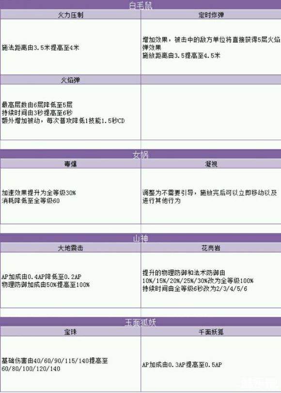 在刀塔西游中白毛鼠算是一个增强吧,现在的2技能总算有用了变成了一个技能输出型adc了(相比其他adc来说)女娲大招总算有用了,之前我玩都是不点大的,求刀塔西游削一下2和3技能的ap加成山神现在变的爆发没那么高了,这样好,越来越接近石头人了,每次对面有山神就秒人有点夸张啊,不过会玩的还是碾压对面,我的本命狐狸也加强了,55我要玩AP狐狸,谁都拦不住。