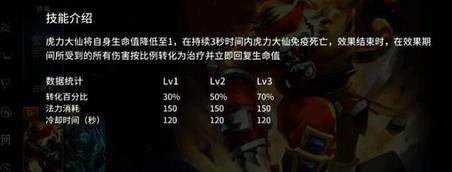 大招血量瞬间到一然后无敌三秒,三秒内承受伤害按百分比回血这个技能的释放很关键。要把握好时机,因为开早了也不是开慢了也不是那么怎样放好大招呢?举个例子:大招是瞬发所以说对于钟馗白无常这样的大招反应快点开大(打钟馗千万别着急他可能反应更快取消大招233) 这个技能也是越塔神级谁用谁知道。
