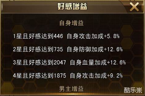 3.好感:通过约会或互动提升女神好感度,对应不同星数好感度可以开启不同属性加成