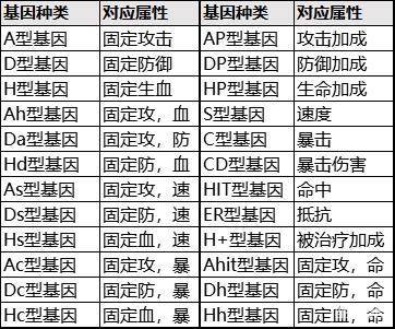 总的来说基因的种类分为:攻击、防御、辅助三大类。