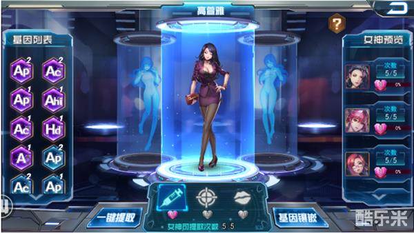 在提取基因时,女神的品质越高好感度越高,才能提取到更高品质的基因道具。