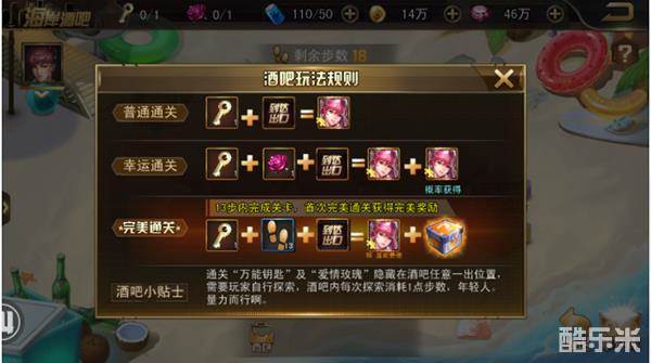 游戏中酒吧玩法是一个解密类特色玩法。玩家需要找到相应道具才能获得最终胜利。并且酒吧玩法也是免费产出女神同名进阶碎片的最重要的途径。完美通关可以有几率多获得1个相应女神的碎片。那么小编就给大家讲解下如何完美通关。