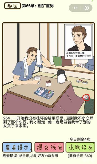 在再见吧渣男手游中粗犷直男第264关究竟该怎么过呢?在再见吧渣男手游中这一关我们一开始并没有往坏处去想,不过看到这个东西,我们发现男友是真的已经劈腿了。