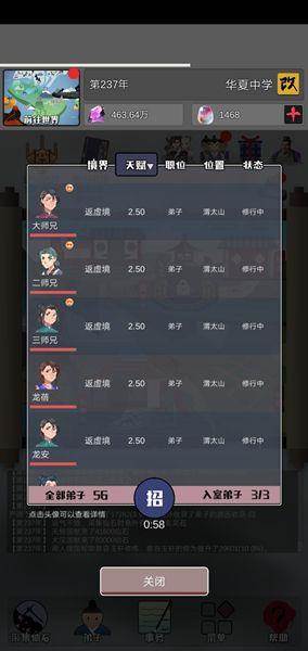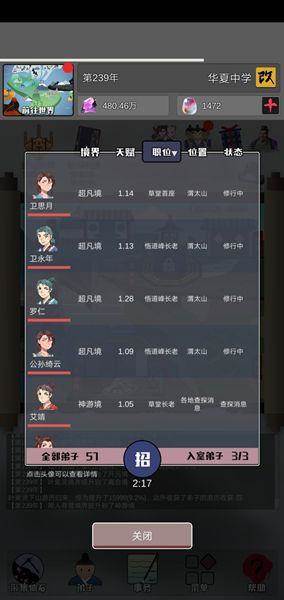 3:关于教导的问题。强烈建议优先天赋高的,不论他的修为多低,因为先教他们,升级就快,越到后期寿命越高,大后期1000多寿命不是问题。同样的境界,不是那些只有几百几十寿命的能比的。同样,所有资源对他们进行倾斜,例如聚灵池、后山幻境、悉心教导。哦对了,救人就用这些资源,能救活就救,救不活就别浪费资源,别管他,资源给天赋高的。