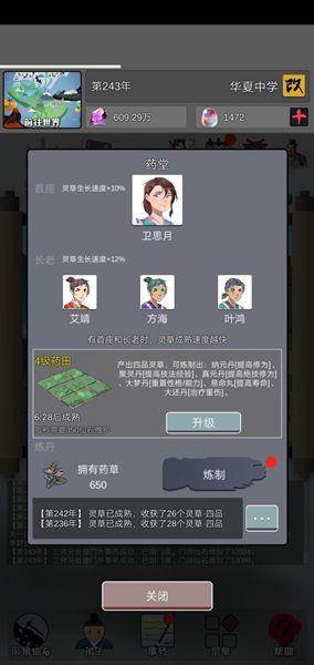 2:关于研究的顺序。草药(有点经验的应该知道用处特别大)——后山幻境(大幅度提升修为,还能加天赋)——友好(友1,友2。因为这是让你获得门派好感度的,多刷好感度比你打门派要轻松的多,目前我所有门派好感度友善,也许这不算什么,但重要的是没有一个是对我又恶意的。为什么不刷友3?因为时间太长,打好基础后年在刷一样)——互助(采集的基础)——采集(自动采集挺重要,毕竟谁愿意手点,仙石重要来源之一,还有一个就是任务了,任务建议选择特殊天赋带事的,有加成)——门事(门1,门2时间太长,当后面)——传道(当然,你也可以优先门事,区别不大)——炼器(之所以炼器最后,是因为它太耗仙石了,前期拿了也没用,楼主我到现在都没有解锁)。备注:炼丹处草药不要动,等到炼丹5级再用,4级也行,但5级好处最大,,因为能出洗髓药。目前我没动过,草药600多,就等草药5级炼洗髓丹。因为不救人,所以不用草药,救人只救1.8以上天赋的,以下的有很多,刷新概率大,不怕死,因为有补充源。