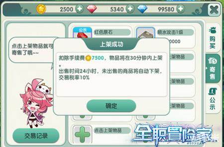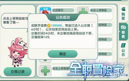 寄售的稀有道具,需要经过6小时的公示才可进行购买。