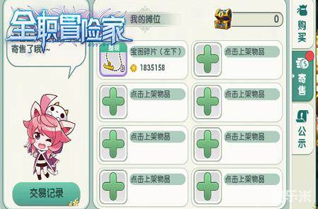 在寄售界面,用户可以查看自己寄售道具的信息、下架正在寄售的道具、取回寄售获得的金币。寄售的商品一旦售出成功则会有提示,点击已售出商品,寄售获得的金币则会存入右上角的钱箱,点击钱箱就可以取出金币