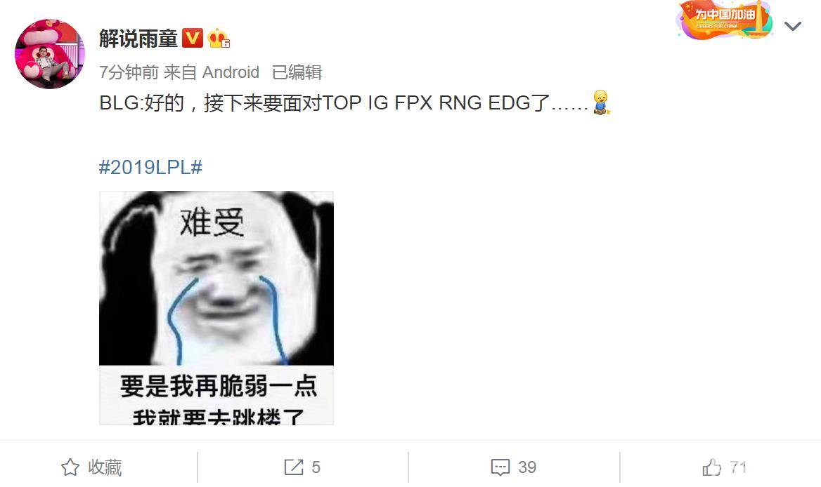 BLG:好的,接下来要面对TOP IG FPX RNG EDG了……
