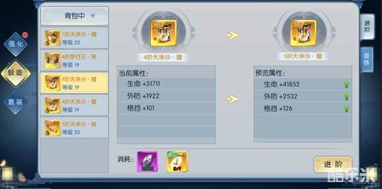 仙域中有特色的锻造系统,能够让你的装备跟着角色进阶,只需要付出少量的进阶材料,完全可以让你的一阶装备一路跟着角色到满级。