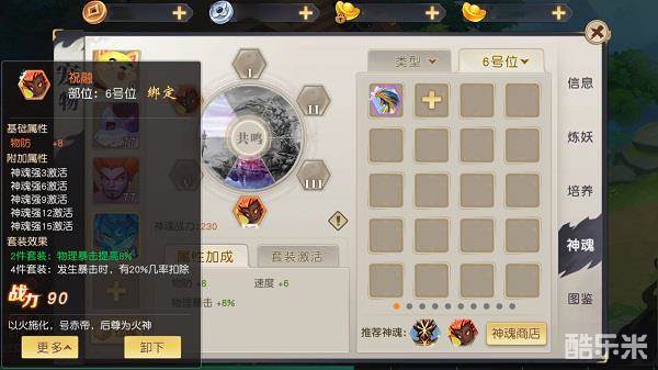 第三种就是以技能“高级连攻”,“乘胜追击”为主的普攻连击流,这个流派主要是利用普攻触发连击、乘胜追击进行连续的输出,神魂适合带祝融,连攻与乘胜追击都有几率触发祝融的神魂特效——发生暴击时,有20%几率扣除当前生命的15%,因此与祝融神魂相性非常合适。