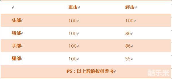 根据上述信息,我们可以看出:重击情况下,无论被尼泊尔-冰封命中哪一个部位,皆可造成致命伤,没有还价余地;反之,轻击除爆头可秒杀外,其他皆需二次补刀。