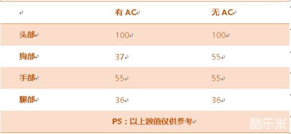 根据上述信息,我们可以看出:被黄金沙鹰-A命中头部,那么无论有无配置AC,都将被瞬秒。其次,命中目标胸口,若有AC则需3枪,反之则为2枪(由此看出AC影响有多高)。至于腿部和手部,因未被护甲覆盖,因而前者2枪、后者3枪。