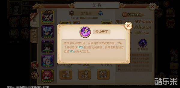 其他两个武将随意,一般考虑用防御型武将。为了专注于实验,不要被怪弄死,考虑自动回血的麒麟阵。