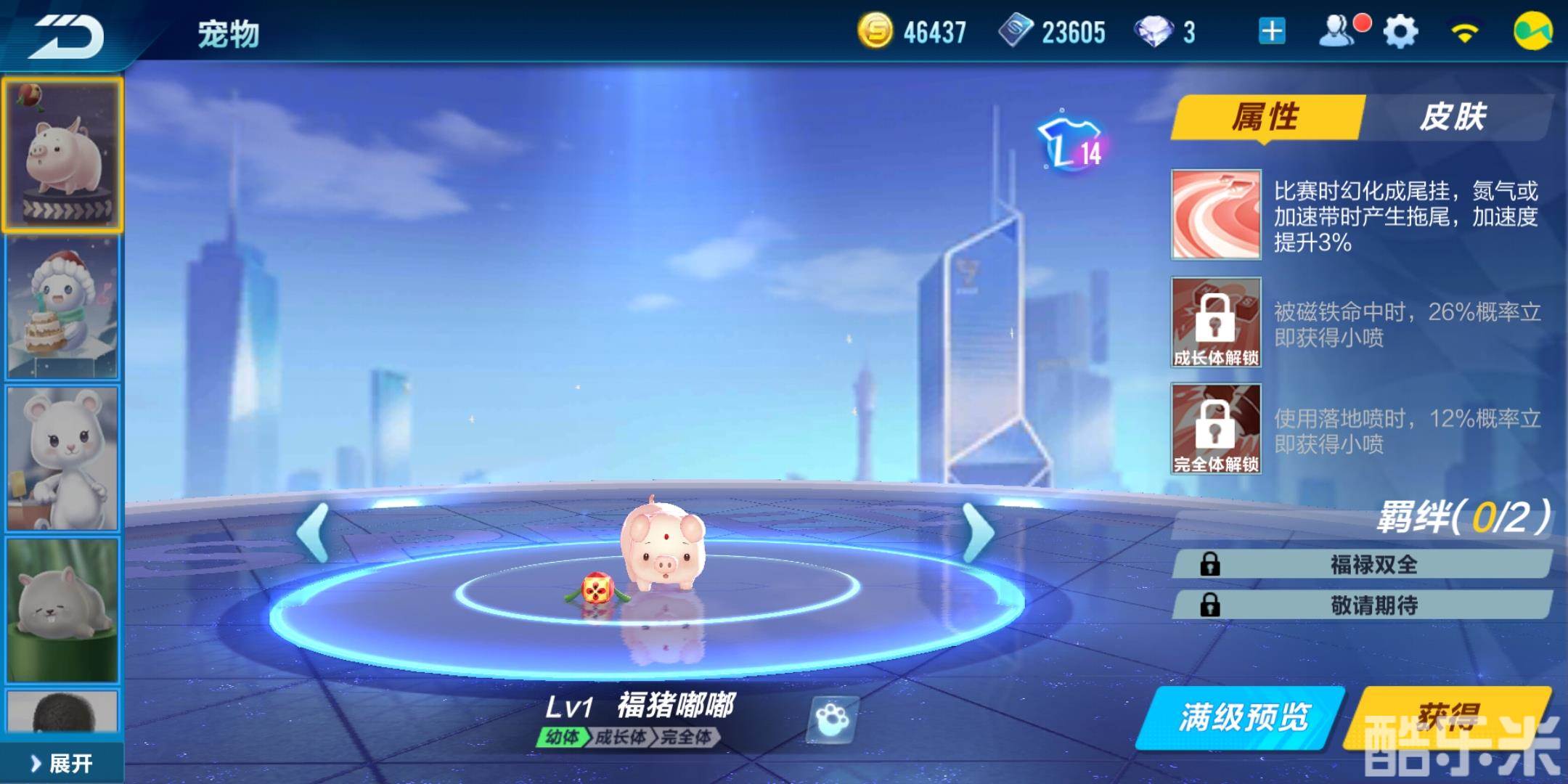 正如一句老话“每逢佳节胖三斤”,咱们的福猪嘟嘟进入成长体之后又是变大了一整圈。头上也换成了真正的舞狮头饰,高抬两条前腿仿佛是在向赛道招手。